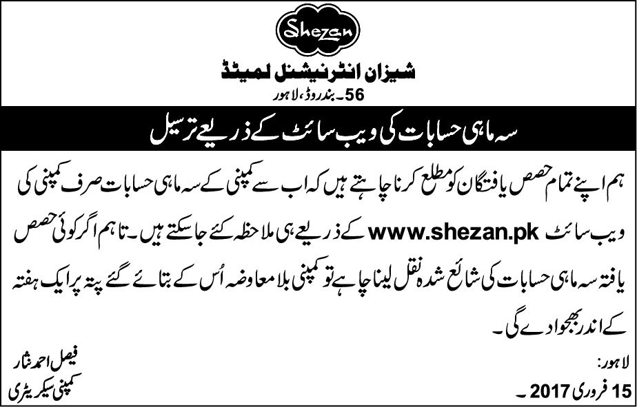 DISCLAIMER: “In case your complaint has not been properly redressed by us, you may lodge your complaint with Securities and Exchange Commission of Pakistan (the “SECP”). However, please note that SECP will entertain only those complaints which were at first directly requested to be redressed by the company and the company has failed to redress the same. Further, the complaints that are not relevant to SECP’s regulatory domain/competence shall not be entertained by the SECP.”